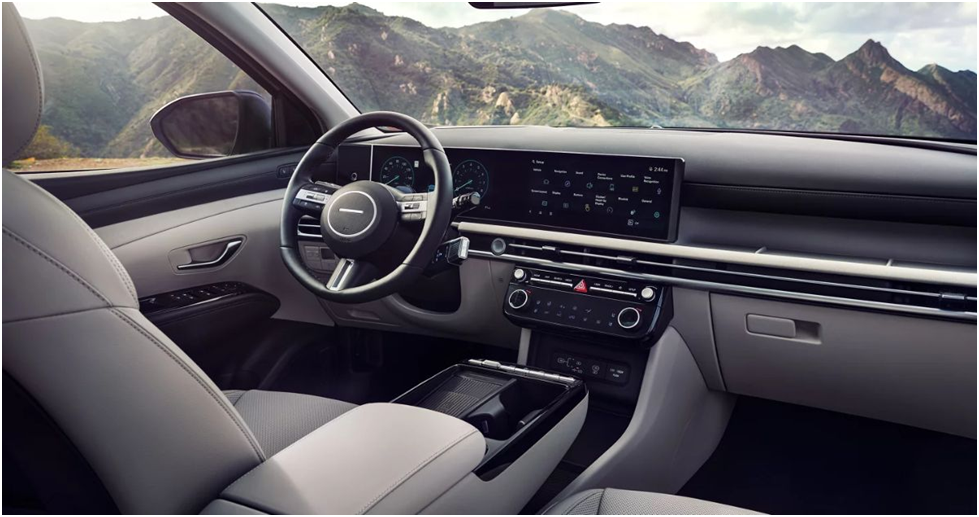 In recent Tucson models, the cockpit centers around the dramatic Panoramic Curved Display. This expansive visual feature unites the 12.3-inch touchscreen with the available 12.3-inch digital instrument cluster.
