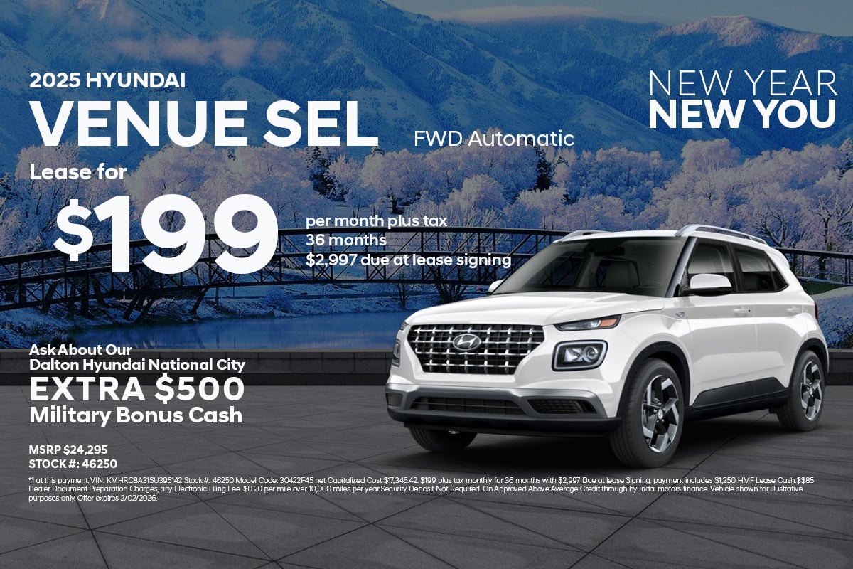 *Although every reasonable effort has been made to ensure the accuracy of the information contained on this site, absolute accuracy cannot be guaranteed. This site, and all information and materials appearing on it, are presented to the user "as is" without warranty of any kind, either express or implied, including but not limited to the implied warranties of merchantability, fitness for a particular purpose, title or non-infringement. All vehicles are subject to prior sale. Prices exclude government fees and taxes, any finance charges, $85 dealer documentation preparation charge, any electronic filing charge, any emissions testing charges and any optional equipment. Dalton Hyundai installs alarm systems on their vehicles to protect them while on dealer's premises. The advertised prices do not include the purchase of the alarm system. The anti-theft device can be purchased for an additional cost. Purchase of the anti-theft device is not required. If customer does not purchase the alarm system it will be removed prior to delivery. All advertised prices expire daily at midnight.