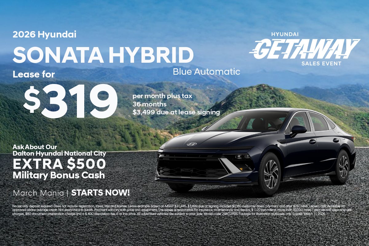 No security deposit required. Does not include registration, taxes, title and license. Lease example based on MSRP $30,445. $3,499 due at signing includes $3,180 customer down payment and after $250 HMF Lease Cash. Available on approved above average credit. Not everyone will qualify. Payment will vary with price and equipment. The lessee is responsible for insurance, maintenance and repairs, $ 0.20 per mile at more than 10,000 miles / year, excess wear and use charges, $80 document preparation charge and a $ 400 disposition fee. 6 at this price. All advertised vehicles are subject to prior sale. Model code: 294C2FBS. Footage for Illustration purposes only. Expires March 31, 2026.