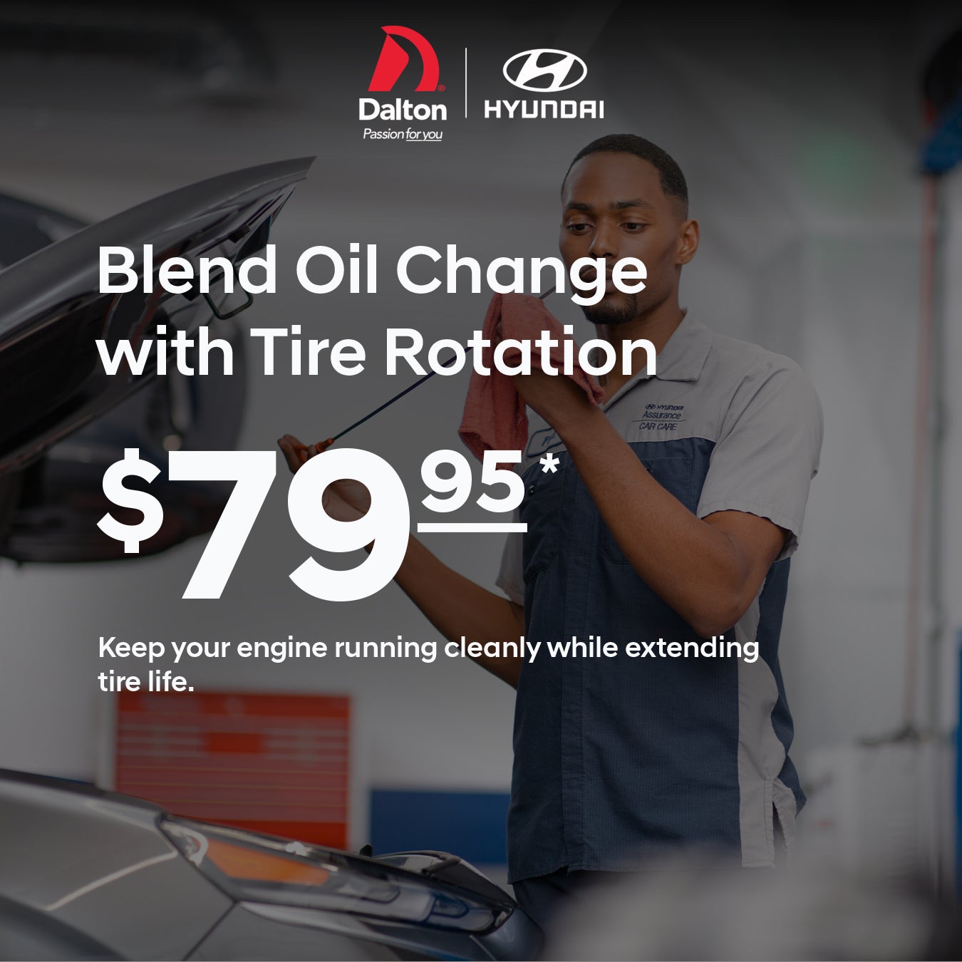 *Plus tax. Plus $3.99 hazardous waste disposal fee. Hyundai only. Most Models. Must present coupon upon time of arrival. Cannot be combined with any other discount or offer and cannot be applied to previous purchases. Valid only at Dalton Hyundai