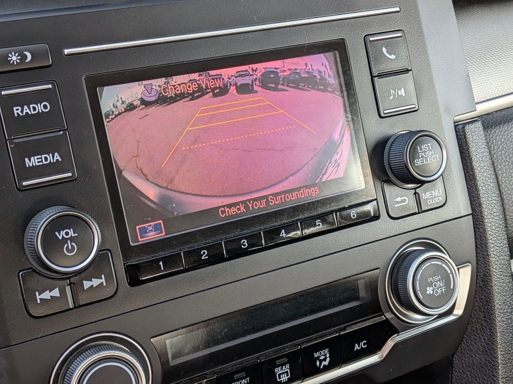 Cloth. Cloth, 16 Wheels w/Full Covers, 4 Speakers, 4-Wheel Disc Brakes, ABS brakes, Air Conditioning, AM/FM radio, Automatic temperature control, Brake assist, Bumpers: body-color, Cloth Seat Trim, Compass, Delay-off headlights, Driver door bin, Driver vanity mirror, Dual front impact airbags, Dual front side impact airbags, Electronic Stability Control, Exterior Parking Camera Rear, Four wheel independent suspension, Front anti-roll bar, Front Bucket Seats, Front Center Armrest, Front reading lights, Fully automatic headlights, Illuminated entry, Low tire pressure warning, Occupant sensing airbag, Outside temperature display, Overhead airbag, Panic alarm, Passenger door bin, Passenger vanity mirror, Power door mirrors, Power steering, Power windows, Radio data system, Radio: 160-Watt AM/FM Audio System, Rear anti-roll bar, Rear window defroster, Reclining Front Bucket Seats, Remote keyless entry, Security system, Speed control, Speed-sensing steering, Steering wheel mounted audio controls, Tachometer, Telescoping steering wheel, Tilt steering wheel, and Traction control.