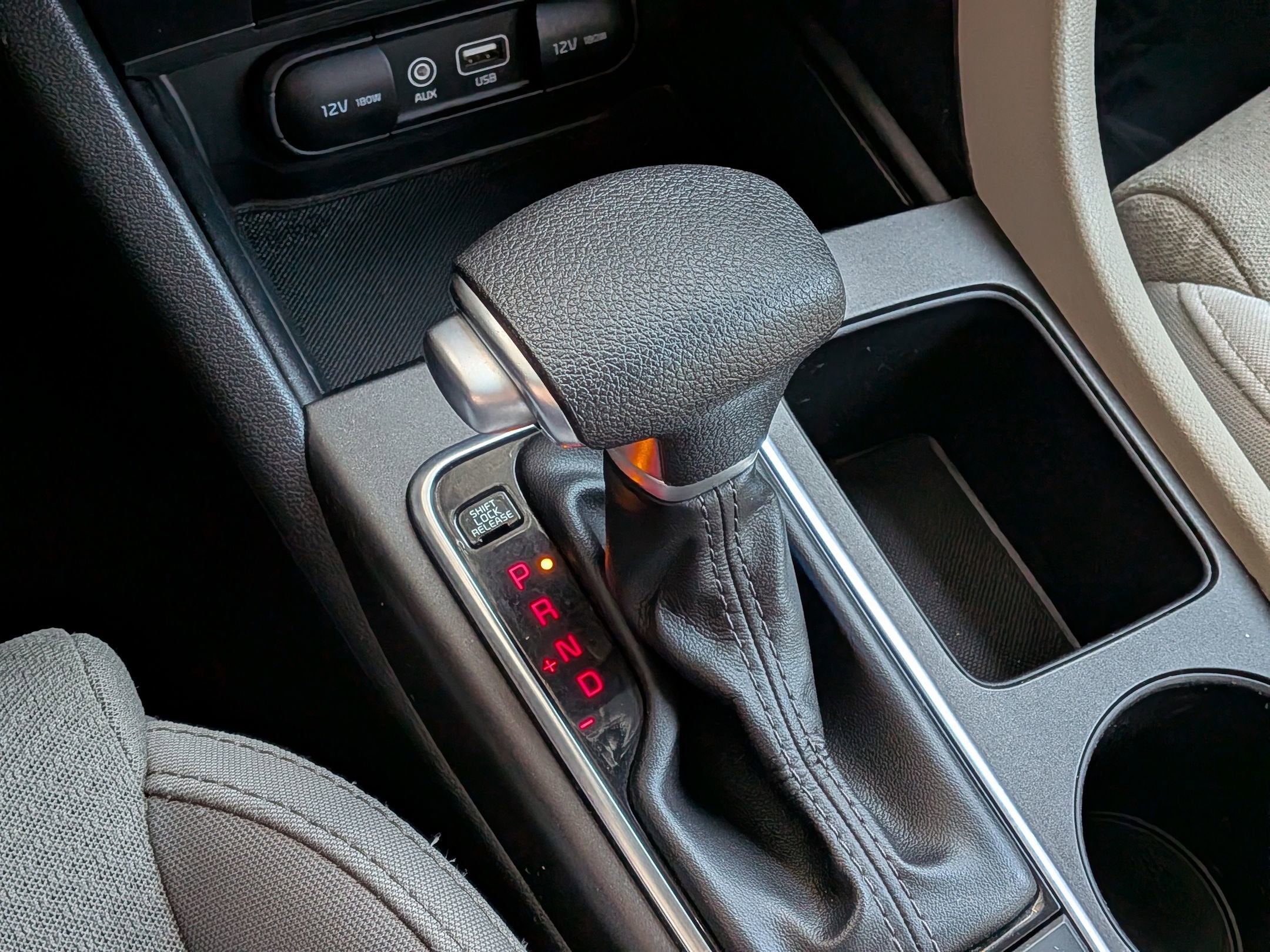 - Floor console storage Covered floor console storage