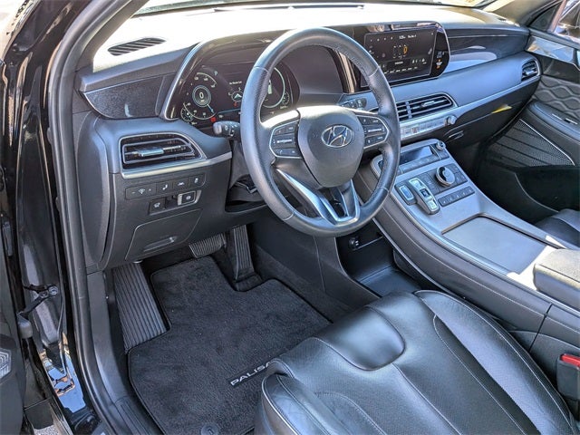 Option Group 01, Hyundai Certified Used Vehicles Certified, 12 Speakers, 3.648 Axle Ratio, 3rd row seats: split-bench, 4-Wheel Disc Brakes, ABS brakes, Air Conditioning, Alloy wheels, AM/FM radio: SiriusXM, Apple CarPlay & Android Auto, Auto High-beam Headlights, Auto-dimming Rear-View mirror, Auto-leveling suspension, Automatic temperature control, Brake assist, Bumpers: body-color, Carpeted Floor Mats, Compass, Delay-off headlights, Driver door bin, Driver vanity mirror, Dual front impact airbags, Dual front side impact airbags, Electronic Stability Control, Emergency communication system: Blue Link Connected Car Service (3-year complimentary subscription), Four wheel independent suspension, Front anti-roll bar, Front Bucket Seats, Front Center Armrest, Front dual zone A/C, Front reading lights, Fully automatic headlights, Garage door transmitter: HomeLink, harman/kardon® Speakers, Heads-Up Display, Heated & Ventilated Front Bucket Seats, Heated door mirrors, Heated front seats, Heated rear seats, Heated steering wheel, Illuminated entry, Knee airbag, Low tire pressure warning, Memory seat, Navigation System, Occupant sensing airbag, Outside temperature display, Overhead airbag, Overhead console, Panic alarm, Passenger door bin, Passenger vanity mirror, Power door mirrors, Power driver seat, Power Liftgate, Power moonroof, Power passenger seat, Power steering, Power windows, Premium Nappa Leather Seat Trim, Radio data system, Radio: AM/FM/MP3 Premium Audio System, Rain sensing wipers, Rear air conditioning, Rear anti-roll bar, Rear audio controls, Rear reading lights, Rear window defroster, Rear window wiper, Reclining 3rd row seat, Remote keyless entry, Security system, Speed control, Speed-sensing steering, Split folding rear seat, Spoiler, Steering wheel mounted audio controls, Tachometer, Telescoping steering wheel, Tilt steering wheel, Traction control, Trip computer, Turn signal indicator mirrors, Variably intermittent wipers, Ventilated front seats, Ventilated rear seats, and Wheels: 20 x 7.5J Calligraphy Exclusive Alloy.