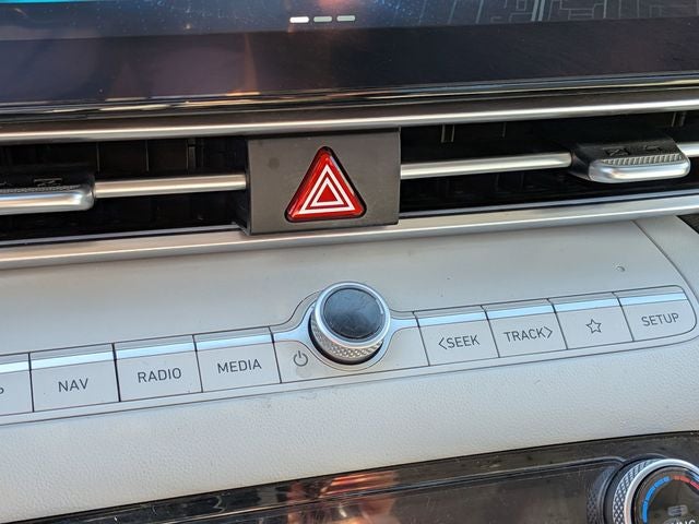 I4. Option Group 01, I4, 17 x 7.0J Alloy Wheels, 4-Wheel Disc Brakes, 8 Speakers, ABS brakes, Air Conditioning, Alloy wheels, AM/FM radio: SiriusXM, Apple CarPlay & Android Auto, Auto High-beam Headlights, Auto-dimming Rear-View mirror, Automatic temperature control, Brake assist, Bumpers: body-color, Carpeted Floor Mats, Delay-off headlights, Driver door bin, Driver vanity mirror, Dual front impact airbags, Dual front side impact airbags, Electronic Stability Control, Emergency communication system: Blue Link Connected Car Service (3-year complimentary subscription), Exterior Parking Camera Rear, First Aid Kit, Front anti-roll bar, Front Bucket Seats, Front Center Armrest, Front dual zone A/C, Front reading lights, Front wheel independent suspension, Fully automatic headlights, Heated & Ventilated Front Bucket Seats, Heated door mirrors, Heated front seats, Illuminated entry, Leather Seat Trim, Leather Shift Knob, Low tire pressure warning, Memory seat, Navigation System, Occupant sensing airbag, Outside temperature display, Overhead airbag, Overhead console, Panic alarm, Passenger door bin, Passenger vanity mirror, Power door mirrors, Power driver seat, Power moonroof, Power steering, Power windows, Radio: AM/FM/HD/SiriusXM Display Audio, Rear seat center armrest, Rear window defroster, Remote keyless entry, Reversible Cargo Tray, Security system, Speed control, Speed-sensing steering, Split folding rear seat, Steering wheel mounted audio controls, Tachometer, Telescoping steering wheel, Tilt steering wheel, Traction control, Trip computer, Turn signal indicator mirrors, Variably intermittent wipers, Ventilated front seats, and Wheel Locks.