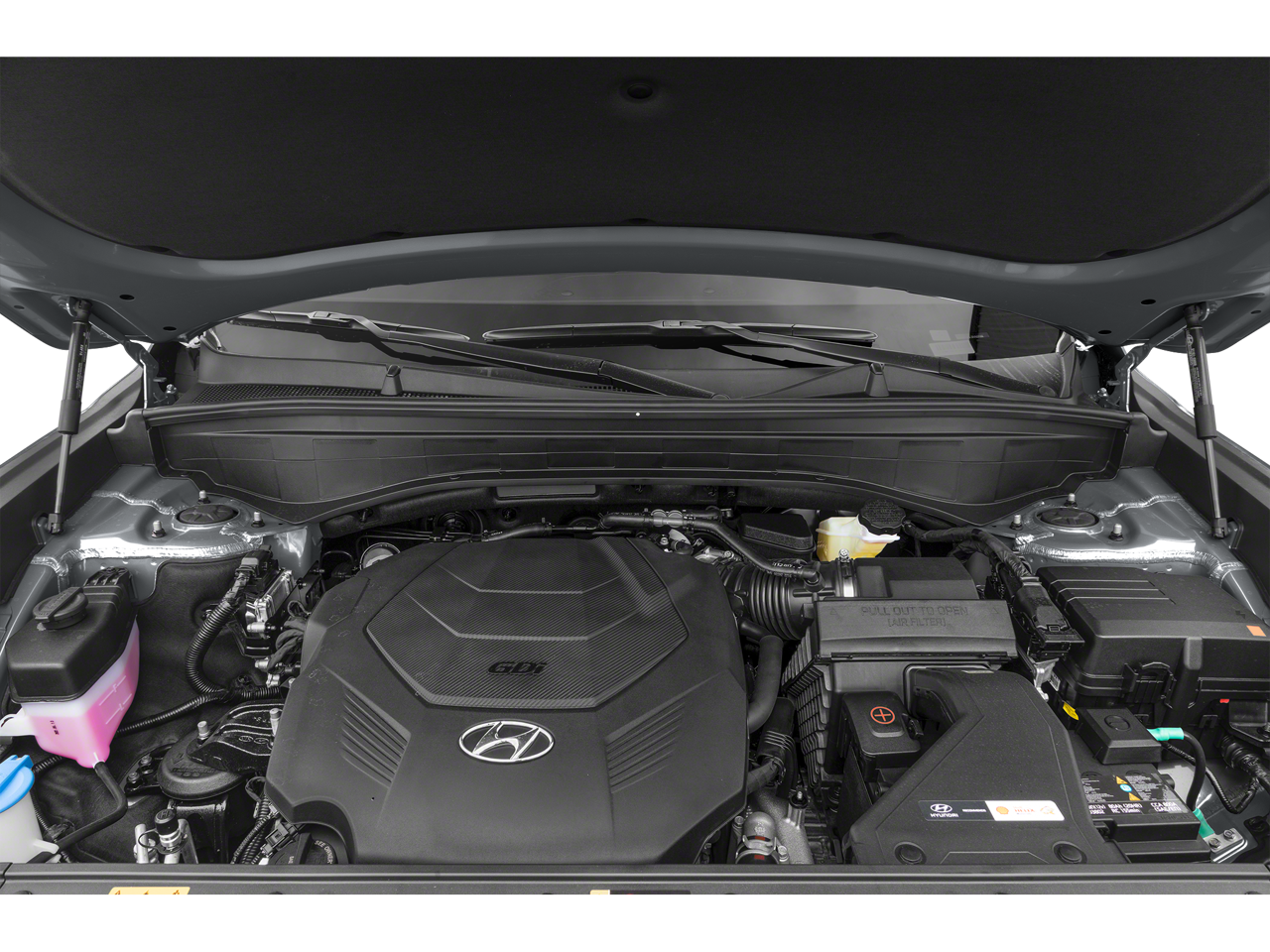 Option Group 01, 3.648 Axle Ratio, 3rd row seats: split-bench, 4-Wheel Disc Brakes, 6 Speakers, ABS brakes, Air Conditioning, Alloy wheels, AM/FM radio: SiriusXM, Apple CarPlay & Android Auto, Auto High-beam Headlights, Auto-dimming door mirrors, Auto-dimming Rear-View mirror, Brake assist, Bumpers: body-color, Cargo Cover/Screen, Cargo Net, Cargo Tray, Carpeted Floor Mats, Cloth Seat Trim, Delay-off headlights, Driver door bin, Driver vanity mirror, Dual front impact airbags, Dual front side impact airbags, Electronic Stability Control, Emergency communication system: Blue Link Connected Car Service (3-year complimentary subscription), Exterior Parking Camera Rear, Four wheel independent suspension, Front anti-roll bar, Front Bucket Seats, Front Center Armrest, Front reading lights, Fully automatic headlights, Heated door mirrors, Illuminated entry, Knee airbag, Low tire pressure warning, Navigation System, Occupant sensing airbag, Outside temperature display, Overhead airbag, Overhead console, Panic alarm, Passenger door bin, Passenger vanity mirror, Power door mirrors, Power steering, Power windows, Radio data system, Radio: AM/FM/MP3 Audio System, Rear air conditioning, Rear anti-roll bar, Rear audio controls, Rear reading lights, Rear seat center armrest, Rear side impact airbag, Rear window defroster, Rear window wiper, Reclining 3rd row seat, Remote keyless entry, Security system, Speed control, Speed-sensing steering, Splash Trim, Split folding rear seat, Spoiler, Steering wheel mounted audio controls, Tachometer, Telescoping steering wheel, Tilt steering wheel, Traction control, Trip computer, Turn signal indicator mirrors, Variably intermittent wipers, Wheel Locks, and Wheels: 18 x 7.5J Painted Finish Alloy.