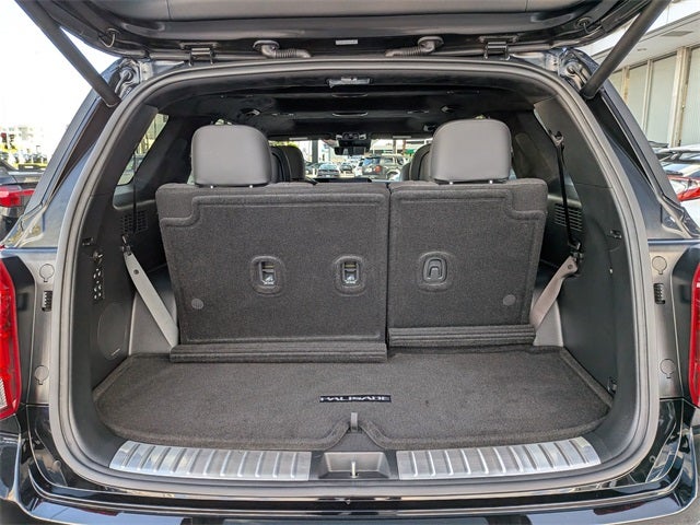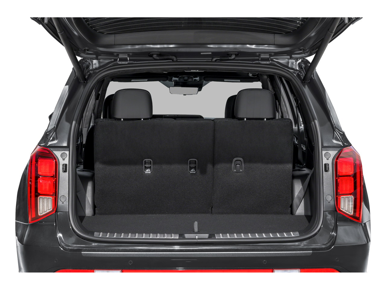 Option Group 01, 12 Speakers, 3rd row seats: split-bench, 4-Wheel Disc Brakes, ABS brakes, Air Conditioning, Alloy wheels, AM/FM radio: SiriusXM, Apple CarPlay & Android Auto, Auto High-beam Headlights, Auto-dimming door mirrors, Auto-dimming Rear-View mirror, Auto-leveling suspension, Automatic temperature control, Brake assist, Bumpers: body-color, Cargo Net, Cargo Tray, Carpeted Floor Mats, Compass, Cross Rails, Delay-off headlights, Driver door bin, Driver vanity mirror, Dual front impact airbags, Dual front side impact airbags, Electronic Stability Control, Emergency communication system, Exterior Parking Camera Rear, Four wheel independent suspension, Front anti-roll bar, Front Bucket Seats, Front Center Armrest, Front dual zone A/C, Front reading lights, Fully automatic headlights, Garage door transmitter: HomeLink, harman/kardon® Speakers, Heads-Up Display, Heated & Ventilated Front Bucket Seats, Heated door mirrors, Heated front seats, Heated rear seats, Heated steering wheel, Illuminated entry, Knee airbag, Leather steering wheel, Low tire pressure warning, Memory seat, Microfiber Suede Seat Trim, Navigation System, Occupant sensing airbag, Outside temperature display, Overhead airbag, Overhead console, Panic alarm, Passenger door bin, Passenger vanity mirror, Power door mirrors, Power driver seat, Power Liftgate, Power moonroof, Power passenger seat, Power steering, Power windows, Radio data system, Radio: AM/FM/MP3 Premium Audio System, Rain sensing wipers, Rear air conditioning, Rear anti-roll bar, Rear audio controls, Rear reading lights, Rear side impact airbag, Rear window defroster, Rear window wiper, Reclining 3rd row seat, Remote keyless entry, Roof rack, Security system, Speed control, Speed-sensing steering, Split folding rear seat, Spoiler, Steering wheel mounted audio controls, Tachometer, Telescoping steering wheel, Tilt steering wheel, Traction control, Trip computer, Turn signal indicator mirrors, Variably intermittent wipers, Ventilated front seats, Ventilated rear seats, and Wheels: 20 x 7.5J Black Liquid Paint Alloy.